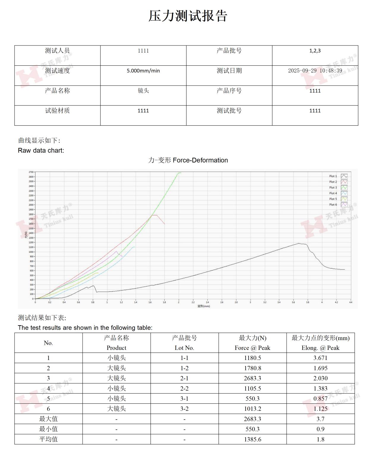 數(shù)據(jù)記錄:記錄最大推力值、以及力-位移曲線形態(tài),用于后續(xù)的統(tǒng)計(jì)過程控制(SPC)分析。