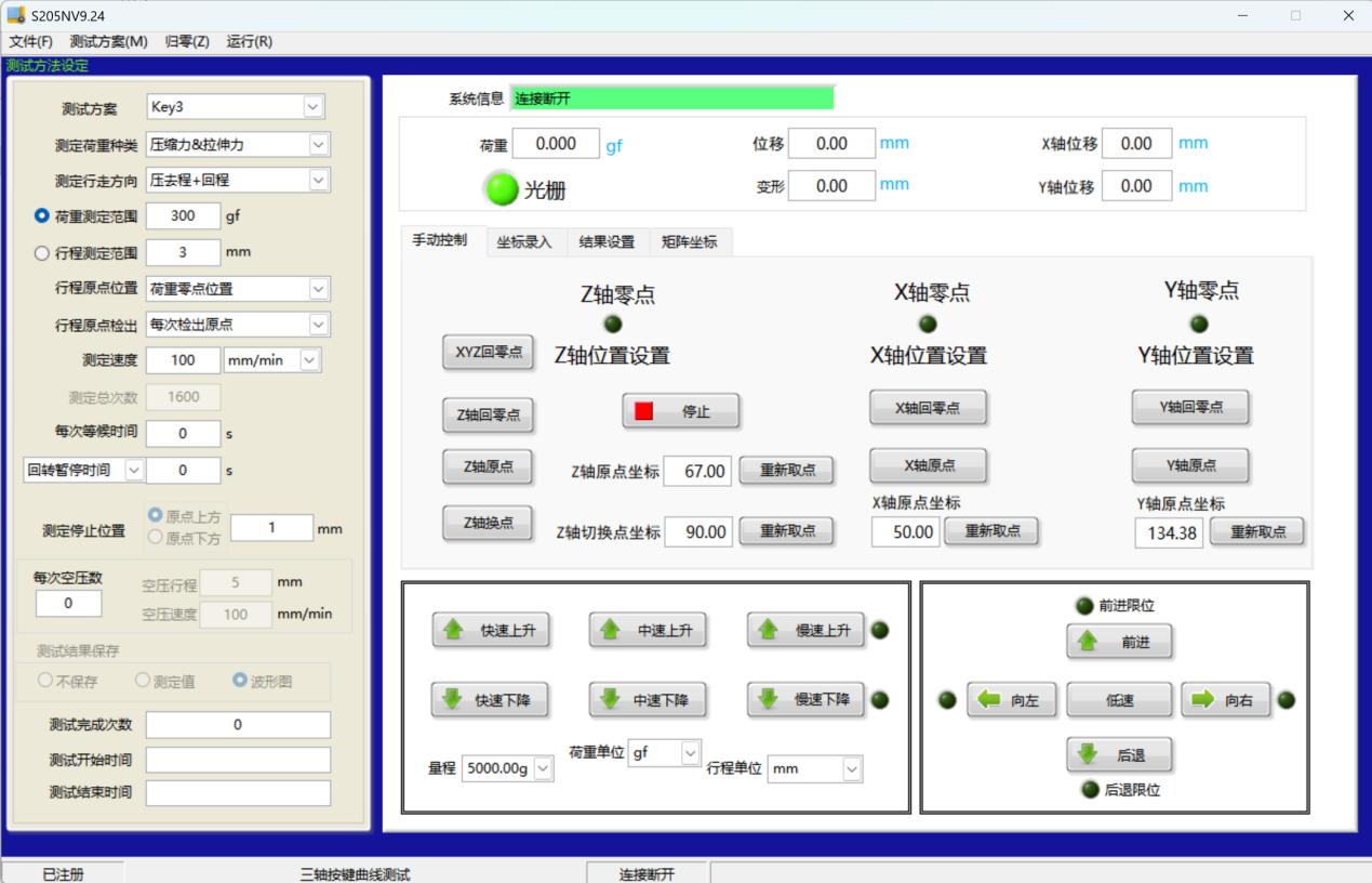 ● 根據測試要求設置Z軸測試速度(0.01-600mm/min)